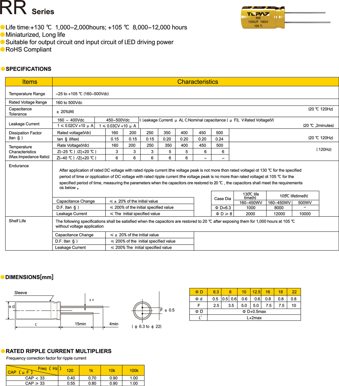 产品型号: 电解电容器 RT系列
